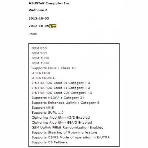 Asus PadFone 2 будет с LTEНедавно Global Certification Forum сертифицировала Asus PadFone 2. Таким образом, грядущий гибрид планшета и смартфона получил поддержку LTE-сетей, которые используются в Европе, Азии, а также Латинской Америке.