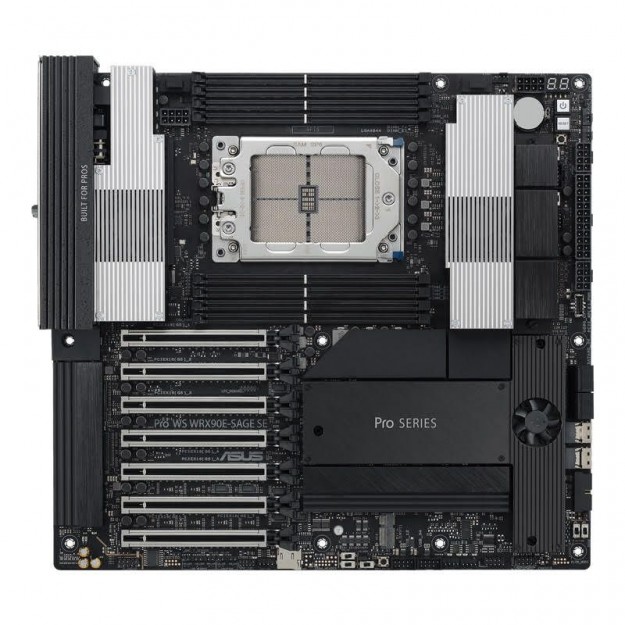 Материнська плата Pro WS WRX90E-SAGE SE забезпечує неперевершену швидкість, сумісність і стабільність для створення контенту, розробки програмного забезпечення, машинного навчання тощо. Для передових процесорів AMD Ryzen™ Threadripper™ серії PRO 7000 WX з 96 ядрами чудова впораються 32+3+3+3 фази живлення, забезпечуючи потенціал продуктивності, необхідний професіоналам для роботи з найсучаснішими програмами. Завдяки вбудованим роз’ємам живлення PCIe, що забезпечують додаткову підтримку декількох відеокарт, активному охолодженню на радіаторах VRM, портам USB 40 Гбіт/с, SlimSAS і вбудованому BMC, Pro WS WRX90E-SAGE SE підготовлена для широкого спектру сценаріїв і галузей. Плата пропонує широкі можливості підключення, зокрема сім швидкісних слотів PCIe 5.0 x16, два порти 10Gb Ethernet, чотири слоти M.2, два порти USB4® 40 Гбіт/с (Type-C®) на задній панелі і підтримку SlimSAS NVMe®. Вона також підтримує модулі пам'яті DDR5 ECC R-DIMM DDR5 до 2 ТБ (1DPC) і має надійну конструкцію, що включає вищезгадану систему живлення з двома 8-контактними роз'ємами живлення для процесора, масивні радіатори охолодження VRM, чипсета і пристроїв M.2 з активними вентиляторами, а також термопрокладки для SSD M.2. ExpertCenter Pro ET900A X9