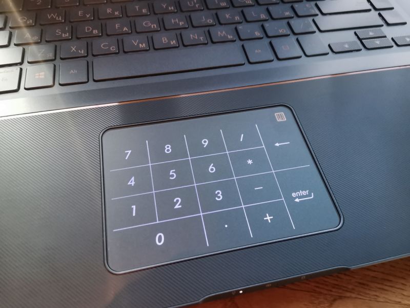 Тачпад со стеклянным покрытием и встроенным NumberPad (опция), функция защиты от ложных срабатываний