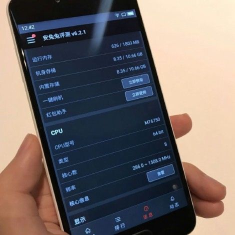 Бенчмарк AnTuTu рассекретил спецификации смартфона Meizu M5Веб-ресурс PlayfulDroid опубликовал фотографии не представленного еще официально смартфона Meizu M5 с запущенным на нем бенчмарком AnTuTu. Таким образом, общественности стали известны и ключевые спецификации будущей новинки, и особенности дизайна ее передней панели. Судя по снимкам, Meizu M5 получил большой экран с довольно толстыми боковыми рамками. Под дисплеем обустроена механическая кнопка "Home", в которую, вероятно, встроен сканер отпечатков пальцев. По данным AnTuTu, аппаратная начинка Meizu M5 представлена 8-ядерным процессором MediaTek MT6750, графическим чипом Mali-T860, 2 ГБ оперативной памяти и 16 ГБ встроенной. Разрешение экрана гаджета составляет 1280х720 точек, а основной камеры - 13Мп. Презентация Meizu M5 ожидается уже 31 октября 2016-го года. Джерело: SmartPhone.ua Обговорення новиниКоментариев пока никто не оставил. Станьте первым! Попередні новини