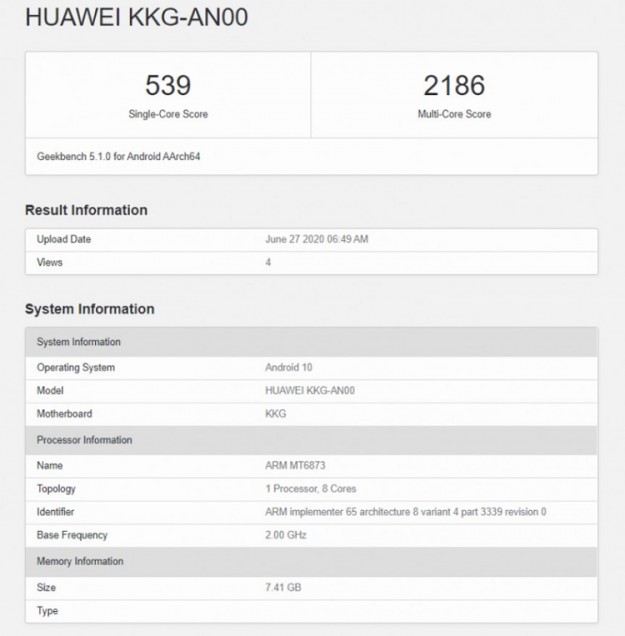Второго июля китайский телекоммуникационный гигант Huawei представит смартфон Honor X10 Max 5G с поддержкой сотовых сетей пятого поколения. Незадолго до анонса этот производительный аппарат (кодовое обозначение KKG-AN00) показался в бенчмарке GeekBench.