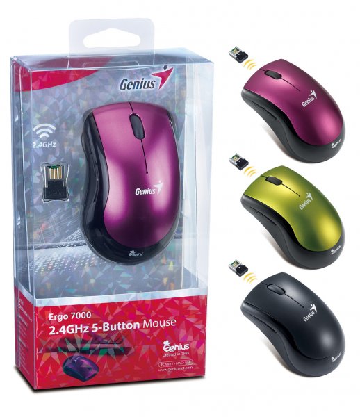 Беспроводная 5-кнопочная мышь Genius Ergo 7000Genius официально представила в Украине новую беспроводную оптическую мышь Ergo 7000, которая обладает компактным дизайном и является достаточно простой в использовании. В новинке используется технология передачи сигнала на частоте 2,4 ГГц, которая позволяет снизить интерференцию для бесперебойной работы устройства. Специальное крепление Stick-N-Go помогает удобно переносить мышь, прикрепив ее к корпусу ноутбука, при этом миниатюрный ресивер можно оставлять подключенным к компьютеру.