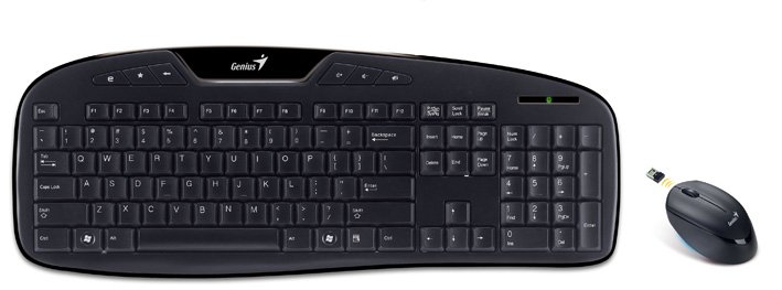 Беспроводная клавиатура и мышь Genius KB-8005Компания Genius представляет мультимедийную беспроводную клавиатуру и мышь нового поколения – модель Genius KB-8005. Комплект обеспечивает помехоустойчивую передачу данных на частоте 2,4 ГГц GHz для удобной работы на большем расстоянии от компьютера. Низкопрофильные клавиши придутся по вкусу пользователям, ценящим комфорт и бесшумность при наборе текста. Для управления медиа-плеерами «одним касанием» и работы в Интернете в модели KB-8005 предусмотрены 6 функциональных клавиш.