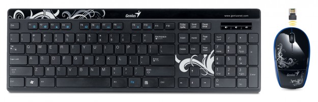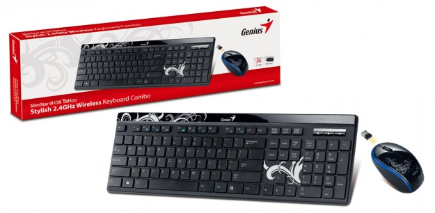Беспроводная клавиатура и мышь SlimStar i8150 TattooGenius представляет SlimStar i8150 Tattoo – стильный беспроводный комплект из мини-клавиатуры и мыши с декоративным оформлением «тату». Этот комплект создан для тех, кто ищет сочетание элегантного внешнего вида с простотой и удобством. Защищенная от помех передача сигнала на частоте 2,4 ГГц обеспечивает больший диапазон действия беспроводных устройств и позволит вам использовать клавиатуру максимально комфортно. Высококачественная оптическая мышь с разрешением 1600 dpi справится с любой задачей, требующей точности и контроля. В мыши также предусмотрено место для хранения USB-приемника, который гарантированно подойдет к вашему компьютеру или ноутбуку.