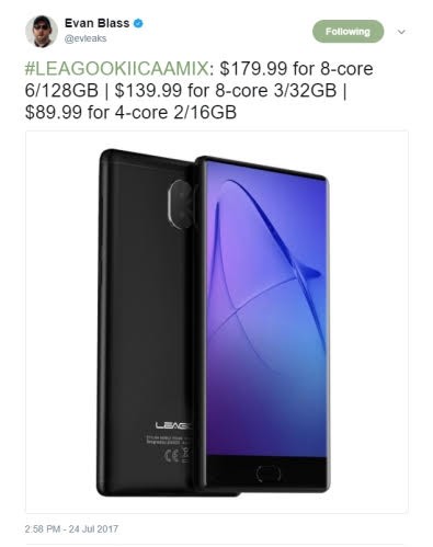 По информацииSmartphone.ua LEAGOO KIICAA MIX будет оснащаться 5,5-дюймовым дисплеем и двойной основной камерой, а также сканером на лицевой панели. Продажи новинки стартуют в августе.