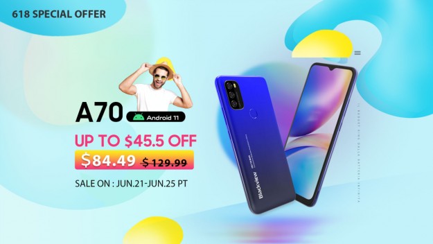A70 - 6,517-дюймовый дисплей с HD+ разрешением и аккумулятор емкостью 5380 мАч, лучшее предложение в соотношении цены и качестваВ массовом сегменте смартфонов, помимо модели A100, советуем обратить внимание на модель Blackview A70. Редко можно увидеть телефон в тонком корпусе толщиной 8,3 мм и легким весом - 205 г с батареей 5380 мАч, 6,517-дюймовым дисплеем HD +, восьмиядерным процессором Unisoc SC9863A с 3 ГБ ОЗУ и 32 ГБ ПЗУ, основной камерой Sony IMX258 13 МПикс. и ОС Android 11 по низкой цене в $84,49 (скидка $45,5).