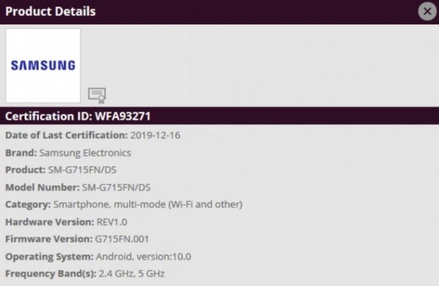 На сайте организации Wi-Fi Alliance появилась информация о смартфоне Samsung с кодовым обозначением SM-G715FN: на коммерческий рынок этот аппарат, как ожидается, выйдет под именем Galaxy Xcover Pro.