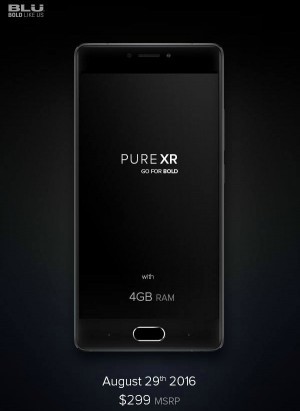 BLU тизерит смартфон Pure XR с 4 ГБ и ценником в $299Американская компания BLU Products опубликовала на своей странице в социальной сети Facebook тизер, посвященный анонсу нового Android-флагана Pure XR. Официальный анонс новинки, судя по изображению, состоится 29 августа. Гаджет будет оснащен 4 ГБ оперативной памяти и получит ценник в $299.