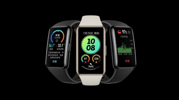 Главной изюминкой Huawei Band 6 Pro стала возможность изменения температуры тела пользователя. В остальном он почти идентичен Huawei Band 6 (обзор) с огромным экраном.