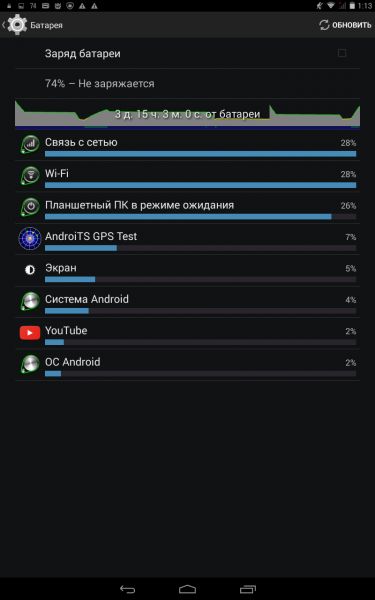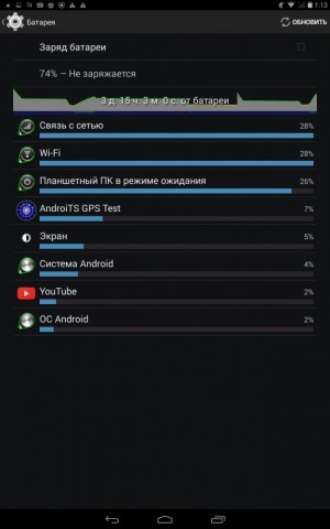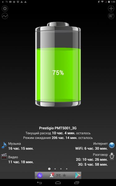 Большой планшет – большие возможности. Prestigio MultiPad MUZE 5001 3G: АккумуляторТестируемый планшет Prestigio MultiPad MUZE 5001 3G укомплектован аккумулятором на 7000 мАч. Для 10-дюймового устройства в компактном корпусе этот показатель можно считать эталонным. На сайте производителя нет данных о расходе батареи в различных режимах, так что, если вас интересует этот вопрос, читайте далее. Для начала установим на планшет приложение Батарея HD. Эта программа умеет определять средние затраты заряда батареи при просмотре видео, серфинге в сети, прослушивании музыки и в других режимах. Делает она это на основе встроенной формулы, которая, видимо, учитывает емкость аккумулятора и размер дисплея. То, что выдал нам бенчмарк, можно увидеть на скриншотах. Как видим, теоретические расчеты гарантируют 11 часов работы в режиме просмотра видео, но при этом лишь 6.5 часов при просмотре информации в сети Интернет с включенным Wi-Fi и до двух часов при игре в 3D-аркаду. В реальных условиях, как мы и писали вчера, в режиме букридера планшет MultiPad MUZE 5001 3G может продержаться почти 8 часов. А вот при просмотре двух двухчасовых фильмов заряда осталось всего 15%. Полчаса игры в гонки Asphalt 8 отбирает 25% от полного аккумулятора. В целом показателями автономности планшета мы остались довольны. Даже при активном использовании устройство может продержаться весь рабочий день без подключения к внешнему источнику питания. Джерело: SmartPhone.ua Обговорення новиниКоментариев пока никто не оставил. Станьте первым! Попередні новини