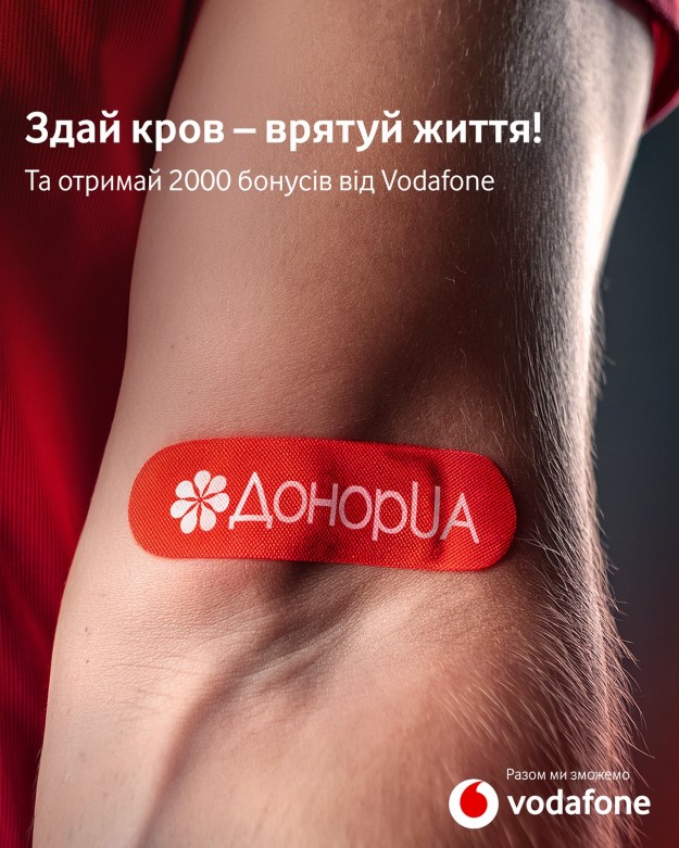 Бонуси за донацію крові: Vodafone та ДонорUA запустили спільну програмуVodafone надає 2000 бонусів всім своїм абонентам, які здають кров та реєструються на ДонорUA. Бонуси за донацію можна обміняти на послуги зв?язку, наприклад, 10 Гб інтернету по Україні, знижки на товари та послуги, а також на благодійність.