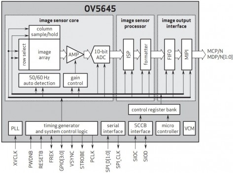 BSI-сенсор OV5645 от OmniVision для недорогих смартфонов и мобильных телефоновСтало известно об анонсе компанией OmniVision сенсора BSI-сенсор OV5645, предназначенного для использования в недорогих смартфонах и мобильных телефонах. Среди особенностей новинки – способность вести видеозапись с разрешением 1080р и скоростью 30 кадров/секунду либо же с разрешением 720р но уже на скорости 60 кадров/ секунду. С прочих особенностей стоит отметить наличие собственной системы автофокуса и отсутствие отдельного механизма для JPEG-сжатия.