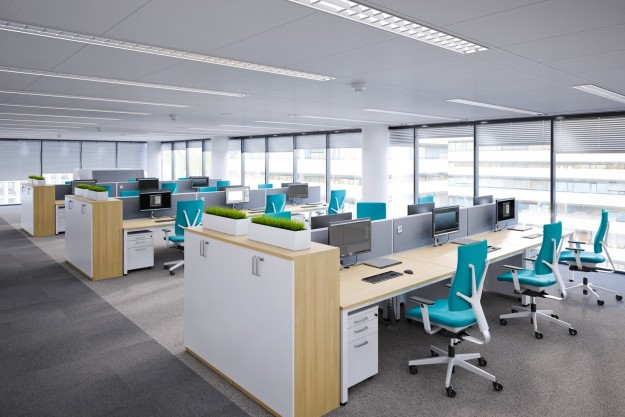 Офис в формате open spaceЭто открытые помещения, где все сотрудники располагаются в большой просторной комнате, разделенной на зоны посредством прозрачных перегородок (или без них). Кабинеты в офисе open space есть только у руководителей. Подобный формат может повысить продуктивность сотрудников благодаря таким преимуществам: