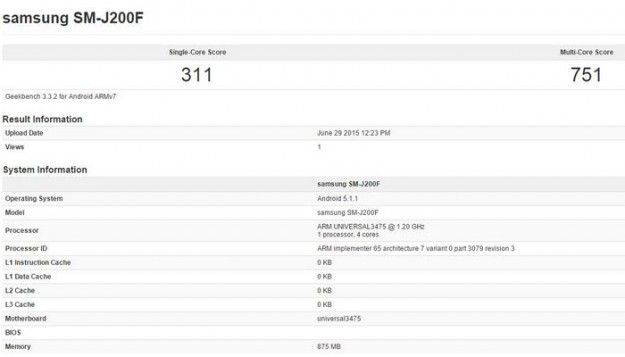 Бюджетный Samsung Galaxy J2 "засветился" в GeekBenchВ базе данных популярного бенчмарка Geekbench был замечен не представленный еще официально смартфон Samsung Galaxy J2 (SM-J200F).