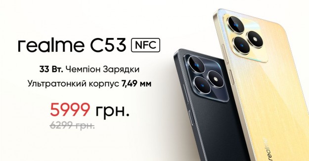 Ціна realme C53 в Україні стартує від 5999 грн за версію 6 ГБ + 128 ГБ.