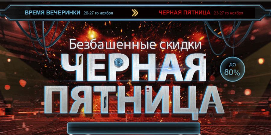 - Чернопятничный переполох - с 23.11 (11:00 по Киевскому времени / 12:00 по Московскому времени) до 27.11 (11:00 по Киевскому времени / 12:00 по Московскому времени)