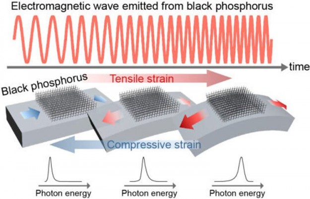 Исследователи из Калифорнийского университета в Беркли провели серию экспериментов с чёрным фосфором (black phosphorous, BP), в которых показали влияние различных типов механического воздействия на материал. В сочетании с дисульфидом молибдена (MoS2) на полиимидной подложке пластинку чёрного фосфора сгибали, сжимали и растягивали. Для гибких смартфонов подошло бы идеально! В процессе опытов выяснилось, что ширина запрещённой зоны материала менялась в достаточно широком диапазоне. Это означает, что светодиоды и фотодиоды на основе чёрного фосфора можно механически перестраивать на работу в целом спектре излучения, с чем хорошо справляются микроэлектромеханические элементы (MEMS).