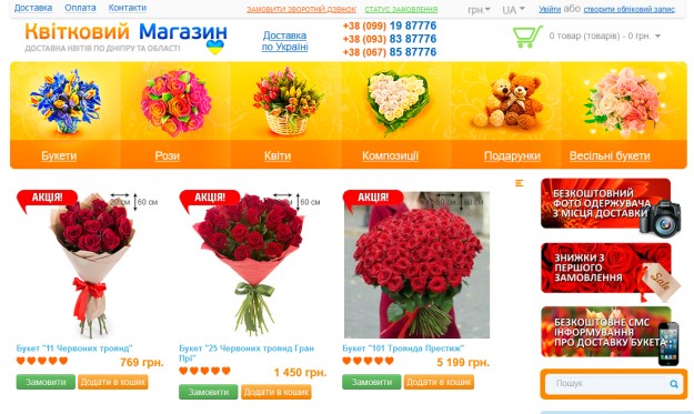 Чим порадувати дівчинуДоставка квітівВважається однією з найпоширеніших послуг, яка користується величезною популярністю, у тому числі, і в нашій флористичній студії. Перш ніж приступити до створення квіткової композиції, наші фахівці ретельно відбирають кожну квітку та детально вивчають весь асортимент. Для втілення будь-якої композиції ви можете довірити справу досвідченим фахівцям, які знають свою роботу і з радістю допоможуть здивувати близьку людину. У подарунок кожен отримує тільки найсвіжіші та найакуратніші квіти. Варто зазначити, що доставка квітів у Дніпрі цілодобова, тож оформити замовлення можна на будь-який час. Переважно оформляти замовлення за кілька днів до передбачуваної дати, щоб переконатися в тому, що букет буде доставлений у зазначені терміни. Оформити замовлення на доставку можна в режимі онлайн, попередньо заповнивши форму на сайті. Крім того, ви можете зв'язатися з нами по телефону, і наші флористи з радістю дадуть відповідь на питання, що вас цікавлять. Якість понад усеНашим головним принципом, за яким ми працюємо не перший рік, є якість. Ми несемо відповідальність за кожен букет, оскільки кожна маленька деталь є важливою і має обов'язково враховуватися. Тому ми відповідально ставимося до своєї роботи і попередньо ретельно відбираємо кожну квітку для вашого букета. Ми знаходимо індивідуальний підхід до кожного клієнта та враховуємо всі побажання, це дозволяє нам залишатися задоволеними результатами спільної з вами праці. Наші флористи – справжні творці і мають особливий творчий підхід до виконання роботи. Прямим доказом є отриманий результат. Окрім класичних букетів, ми пропонуємо величезний асортимент інших подарунків. На сайті нашої флористичної студії пропонуємо вам замовити, крім стандартних квіткових композицій, ще й їстівні букети. Упакувати свій подарунок можна в будь-яку упаковку, що сподобалася, доповнивши його іграшками, солодощами та інше. Купити квіти у Дніпрі з доставкою полегшало після появи нашої флористичної студії. Швидка доставкаДля нас дуже важливою є точність, тому ми намагаємося вчасно доставляти замовлення. Ви можете без краплі сумніву довіритися нам, адресат отримає свій букет незалежно від того, де він живе і до того ж, у вибрані терміни. Додатково можете вкласти в букет листівку із приємним посланням. Наша служба працює щодня та приймає замовлення на сайті або по телефону. Для постійних клієнтів ми маємо програму лояльності. Пропонуємо замовити доставку квітів у Дніпрі від найкращої флористичної студії.