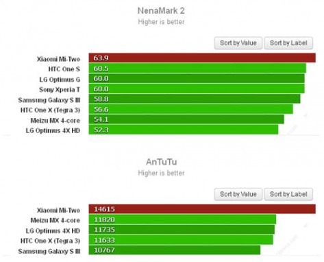Что показал Xiaomi Mi-Two на тестах Linpack, Quadrant, NenaMark 2, AnTuTu и VellamoНе так давно несколько специализированных китайских СМИ успели получить Xiaomi Mi-Two, что говорится, еще «горячими» для тестирования на страницах своих ресурсов. Таким образом, мы с вами, дорогие читатели, теперь можем посмотреть на возможности этого смартфона. На иллюстрациях ниже Xiaomi Mi-Two сравнивается с флагманами других производителей.