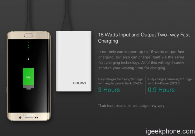 Chuwi Hi-Power 10050 мАч — внешний аккумулятор с поддержкой технологии Qualcomm Quick Charge 3.0Компания Chuwi анонсировала старт приема предварительных заказов на новый внешний аккумулятор Hi-Power 10050 мАч с двухсторонней быстрой зарядкой Quick Charge 3.0.