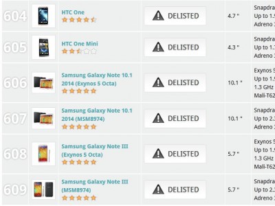 Cмартфоны Samsung и HTC "исчезают" из популярных бенчмарковПосле сообщений о том, что компании HTC, LG, ASUS и Samsung подделывают результаты, показанные их девайсами в процессе прохождения тестов на производительность в популярных бенчмарках AnTuTu и GFXBench, некоторые аппараты этих производителей попросту начали исключать из списков тестеров. Так, к примеру, стало известно, что со списков бенчмарка 3DMark компании Futuremark были удалены смартфоны HTC One, HTC One mini, Samsung Galaxy Note 3 и планшет Galaxy Note 10.1 2014. Причиной этому послужило то, что эти устройства не удовлетворяют такое условие политики приложения как принцип справедливости.