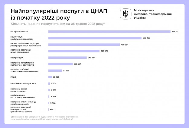Попри повномасштабну війну, ЦНАПи продовжують безперебійно надавати швидкий та людяний держсервіс. Тож станом на 5 травня українці отримали вже понад 3,5 млн необхідних їм послуг. Найчастіше послугами ЦНАП користувалися жителі таких областей: