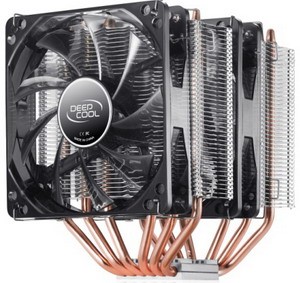 Neptwin – еще один, новый двойной радиатор башенного типа, который производит компания Deepcool. Его конструкция включает шесть припаянных к медному основанию тепловых трубок и два вентилятора диаметром 120 мм. Устройство не выделяется внешним видом, однако отличается прекрасным соотношением цена/качество.