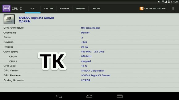 CPU-Z подтвердил 64-битный Nvidia Tegra K1 Denver для Nexus 9В Сети опубликовали скриншоты программы CPU-Z с техническими характеристиками якобы нового не представленного еще официально планшета Nexus — совместного "детища" компаний HTC и Google. Согласно данным CPU-Z, планшет будет оснащен новейшим 64-битным процессором Nvidia Tegra K1 Denver с двумя ядрами ARMv8, который развивает скорость 2,5 ГГц. Графический модуль — 192 ядра Nvidia Kepler.