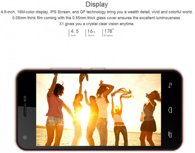 Девайс оснащен 4.5-дюймовый IPS-дисплеем с разрешением 960x540 пикселей, 4-ядерным процессором MediaTek MTK6582 с тактовой частотой 1.3 ГГц и графикой Mali-400 MP, 1 ГБ оперативной памяти и 8 ГБ встроенной, которую можно расширить с помощью карт памяти формата microSD максимальным объемом до 32 ГБ.