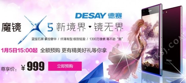 Desay X5 — тонкий Android-смартфон с сапфировым стеклом за $160В Китае состоялся анонс бюджетного смартфона Desay X5, 5-дюймовый HD-экран которого прикрыт сверхпрочным сапфировым стеклом. Тыльная панель гаджета, к слову, также выполнена из стекла, а каркас из сплава алюминия и магния.