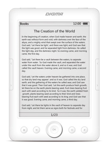 Digma R60G: новый E-Ink HD Pearl – ридер с возможностью чтения в темнотеDigma расширила ассортимент ридеров под собственной торговой маркой первым устройством на базе матрицы E-Ink HD Pearl, оснащенным подсветкой, что сделало возможным чтение ночью без необходимости в дополнительном освещении. Производитель заявляет о том, что эта новинка получила так называемую «регулируемую» подсветку. Пользователь сам может изменять уровень освещения экрана, как с корпуса, так и непосредственно из меню. С прочих особенностей ридера известно следующее. Диагональ дисплея шесть дюймов, а разрешение 1024x758 точек.