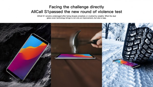 Дисплей AllCall S1: двойное стекло гарантирует высокую прочность и выносливостьКогда дело доходит до прочного и выносливого экрана, смартфон AllCAll Rio от китайского производителя телефонов – AllCall, обычно бывает первым, кто приходит в голову. AllCall RIO со стеклом толщиной почти 1,8 мм защищает экран от повреждений даже при падении с высоты 1,5 м, ударах молотком и даже проездом по нему автомобилем. Это все можете сами проверить в официальном видео от компании AllCall https://www.youtube.com/watch?v=HetrRE_iWTQ.