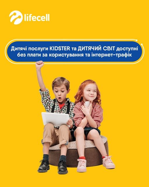 Дитячі послуги KIDSTER та ДИТЯЧИЙ СВІТ доступні для абонентів lifecell без плати за користування та інтернет-трафік. Скористатися ними можна, навіть коли на рахунку 0.