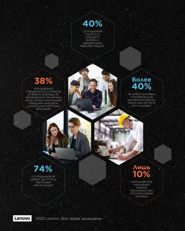 Для 71% сотрудников ПК остается основным рабочим инструментом – исследование LenovoДанные исследования компании Lenovo свидетельствуют, что 71% сотрудников малого и среднего бизнеса (МСБ) до сих пор использует настольный компьютер как основной рабочий инструмент. 40% сотрудников не удовлетворены рабочей средой из-за несовершенного технического оборудования, отсутствия карьерного роста и гибкого графика работы.