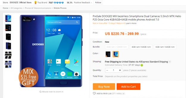 DOOGEE MIX уже доступен на AliExpress за $169.99DOOGEE MIX – это смартфон от компании из разряда черных лошадок, которая недавно появилась на рынке и уже успела показать смартфон с экраном без рамок. Его предпродажи стартовали на Banggood с $169.99.