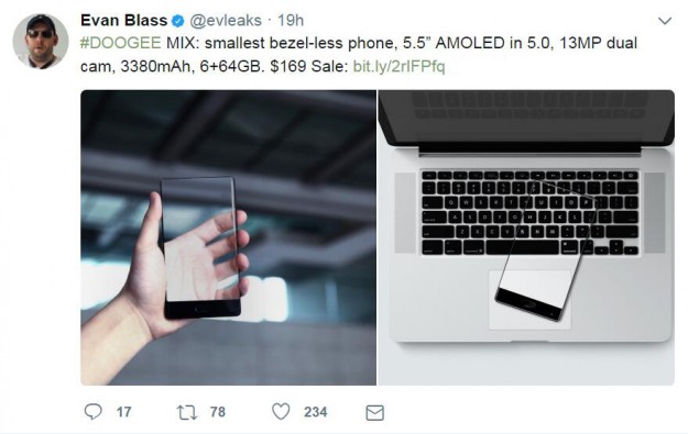 Даже Эван Бласс рекомендует DOOGEE MIX в своем твиттере.