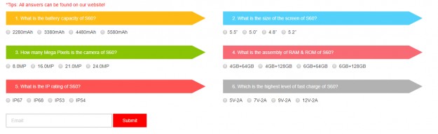 Сейчас есть шанс для всех выиграть Doogee S60 БЕСПЛАТНО! Все, что вам нужно сделать для этого, это выбрать ответы по ссылке и ввести свой адрес электронной! DOOGEE будет произвольно выбирать 3 кандидата, которые выбрали все правильные ответы, чтобы отправить им модель S60 18 сентября!
