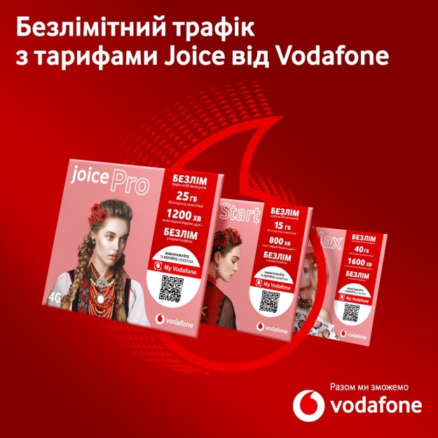 Доступний роумінг тепер включено у всі тарифи Vodafone Joice10 ГБ інтернету, 100 хвилин на розмови в Україні та країні перебування — за 0 грн.