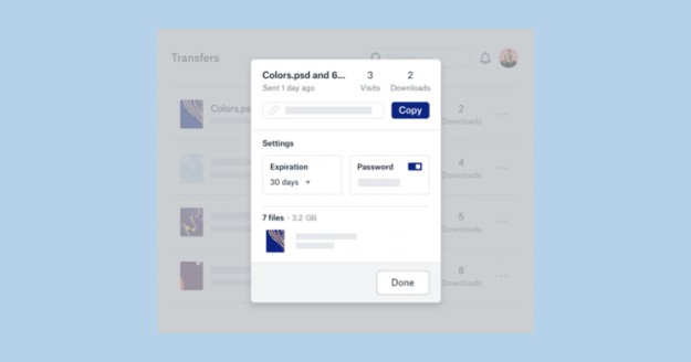 Для этого был запущен сервис Dropbox Transfer, который, как утверждается, позволяет передавать файлы размером до 100 Гбайт всего за несколько кликов. При этом после закачки файла в облако будет сформирована ссылка, которая позволяет скачать данные даже тем, у кого нет аккаунта Dropbox. В общем, такой себе файлообменник, только с куда более продвинутыми возможностями.