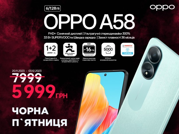 Два тижні «чорних» знижок на гаджети ОРРОНайулюбленіша п’ятниця року - остання п'ятниця листопада, «чорна» від знижок і пропозицій улюблених брендів. ОРРО AED Україна теж оголошує знижки на свої гаджети. А найголовніше, для фанів бренду ОРРО «чорна п'ятниця» триватиме два тижні, з 20 листопада до 3 грудня. СмартфониСмартфон OPPO A38 (4/128Гб) на платформі MediaTek Helio G85 з 33Вт SUPERVOOC швидкою зарядкою і 5000 мАг потужним акумулятором. Пристрій може похвалитися 50 Мп камерою зі штучним інтелектом, приголомшливим дисплеєм з частотою оновлення 90 Гц і режимом надгучності, що ідеально поєднуються для забезпечення виняткового користувацького досвіду для повсякденного використання та розваг. Пристрій має 6,56-дюймовий HD+ дисплей із частотою оновлення 90 Гц і колірною гамою 96% DCI-P3, який може досягати 720 ніт яскравості в режимі високої яскравості. OPPO A38 оснащений 4Гб RAM+128Гб ROM та технологією розширення пам'яті, яка дозволяє конвертувати вільний простір ПЗУ в 4 Гб оперативної пам'яті. OPPO A38 також пропонує користувачам режим підвищеної гучності, програмну функцію, яка допомагає посилити гучність динаміка на 300%. Звичайна ціна 7 299 грн. Акційна ціна 5 555 грн (20/11-03/12).