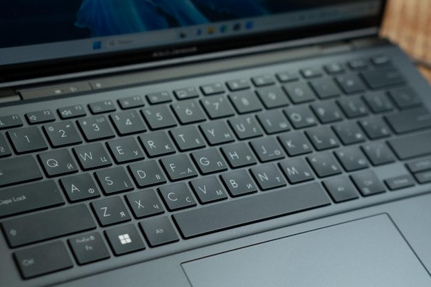 Клавіатуру з вбудованим акумулятором можна від’єднати, щоб повністю задіяти візуальний робочий простір, або ж розмістити на нижньому дисплеї, перетворивши на робочу панель звичайного ноутбука. Ноутбук ASUS Zenbook DUO, доступний в Україні, комплектується Bluetooth-клавіатурою, на якій присутні символи лише української та англійської розкладок.