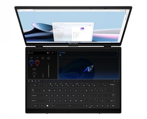 Zenbook DUO забезпечує максимальну продуктивність для роботи й розваг протягом усього дня завдяки процесору Intel до моделі Core™ Ultra 9 з інтегрованим нейронним процесором для прискорення ШІ-обчислень, 32 ГБ пам’яті LPDDR5x, твердотільному накопичувачу PCIe® 4.0 місткістю до 2 ТБ, акумулятору ємністю 75 Вт з тривалим терміном служби, а також аудіосистемі з підтримкою технології Dolby Atmos®, сертифікованій компанією Harman Kardon.