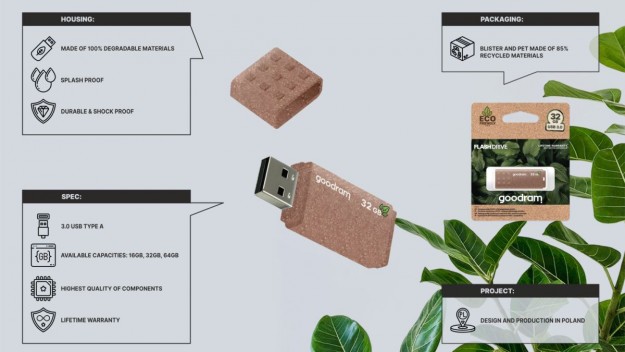 Местные и глобальные компании совместно с потребителями занимаются сохранением здоровой окружающей среды и уменьшают пластиковое загрязнения. GOODRAM также предпринимает усилия, чтобы сделать свою продукцию безопасной для окружающей среды, и сегодня компания представляет новую модель USB накопителя с биоразлагаемым корпусом.