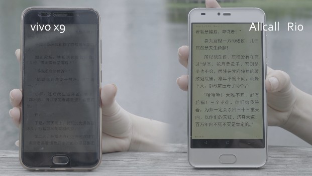 Ниже приведены фотографии сравнения между смартфоном AllCall Rio и Vivo X9. Из рисунка видно, что оба телефона имеют хорошие экраны. AllCall Rio имеет более холодную картинку, а Vivo X9 более теплую. Но учтите, что после длительного использования теплый экран может стать желтым.
