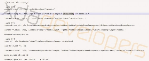 Если говорить точнее, при анализе самой свежей версии приложения Samsung Pay было обнаружено две явных отсылки к встроенному в экран датчику отпечатков пальцев, причём в одном из них одновременно прямо упоминается кодовое имя Galaxy S10 — Beyond. Стоит отметить, что все три будущих смартфона носят это кодовое имя, так что сказать, о каких именно идёт речь, из анализа кода нельзя (согласно слухам, в младшей модели S10 Lite сканер отпечатков пальцев будет сбоку).