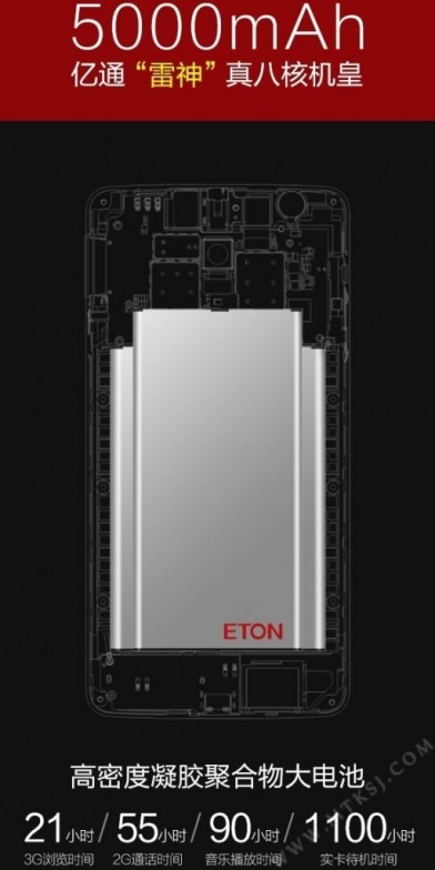 Eton Raytheon — 8-ядерный смартфон с аккумулятором на 5000 мАчКитайская компания Eton готовит к анонсу смартфон Raytheon с аккумулятором емкостью 5000 мАч, который призван составить конкуренцию на рынке таким "долгожителям", как Lenovo P780, Gionee V185, Highscreen Boost 2 SE и Philips Xenium W6610.