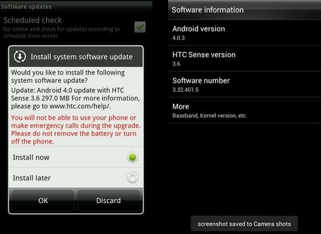 Европейские пользователи HTC Sensation начали получать уведомления о доступности Ice Cream SandwichПоявилась информация, что в европейские владельцы смартфона HTC Sensation стали "получать свою порцию" Ice Cream Sandwich, которая идет за номером Android 4.0.3. Странно, что тайваньская компания так тихо (для столь значимого события) выпустила апгрейд, причем помимо Ice Cream Sandwich в составе обновления также присутствует новая версия Sense UI (3.6). Однако пока обратной связи от воспользовавшихся обновлением не поступало.
