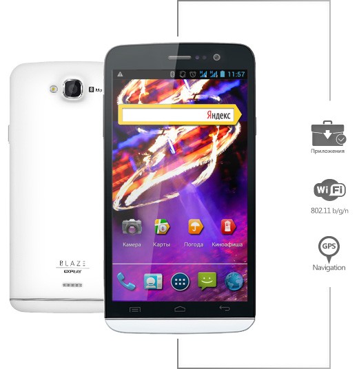 В наличии девайса также аккумулятор емкостью 2350 мАч, 2Мп фронтальная камера и 8Мп основная с автофокусом, беспроводные модули GPS, Wi-Fi 802.11 b/g/n и Bluetooth 4.0. Размеры Explay Blaze составляют 156х77х8.9 мм, а вес 156 грамм.