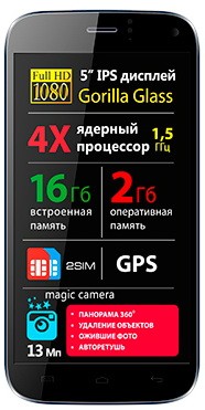 Аппарат получил от производителя 5-дюймовый IPS дисплей с разрешением 1920х1080 пикселей, прикрытый защитным стеклом Gorilla Glass второго поколения, 4-ядерный процессор MediaTek MT6589T с тактовой частотой 1.5 ГГц, 2 ГБ оперативной памяти и 16 ГБ внутренней. В наличии новинки также аккумулятор емкостью 2000 мАч, 5Мп фронтальная камера и 13 Мп основная, беспроводные модули Wi-Fi 802.11 b/g/n, Bluetooth 4.0 и GPS, поддержка USB-OTG.