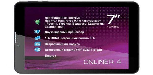 Explay Onliner 4 — 7-дюймовый планшет с функциями навигатора за $115Российская компания Explay пополнила арсенал своих устройств планшетом-навигатором Onliner 4, работающим под управлением операционной системы Android 4.4 KitKat. Девайс оснащен 7-дюймовым экраном с разрешением 1024х600 пикселей, 2-ядерным процессором MediaTek MTK 8312 с тактовой частотой 1.3 ГГц, 1 ГБ оперативной памяти и 8 ГБ встроенной, которую можно расширить с помощью крат памяти формата microSD максимальным объемом до 32 ГБ.